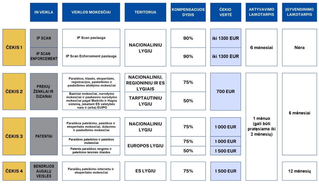 Svarbu! Būtina laikytis MVĮ fondo etapų eiliškumo, t.y. pirmiau gaukite paramą (čekį(-ius)) ir tik gavus čekį(-ius) paduokite paraišką dėl prekių ženklo, dizaino, patento ar augalų veislės registravimo ir (ar) kreipkitės dėl IP Scan paslaugos.